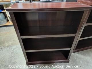 Lot #0029: Modern Cherry Finish 2-Shelf Bookcase