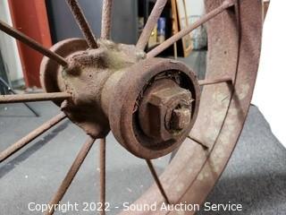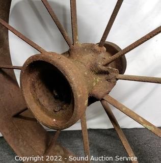 Lot #0121: Vtg. Rustic Tractor Spoked Wheel Hub Yard Art
