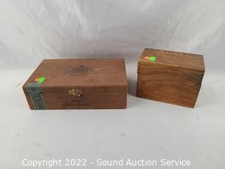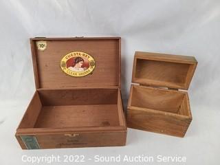 Lot #0355: Vtg. Wood Crate, Trinket, Cigar & Index Card Boxes