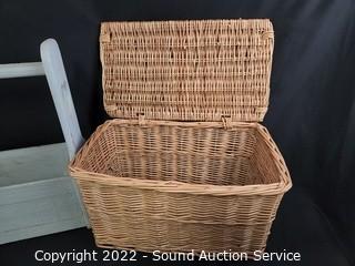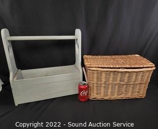 Lot #0316: Wicker Wove Basket & Wood Tote