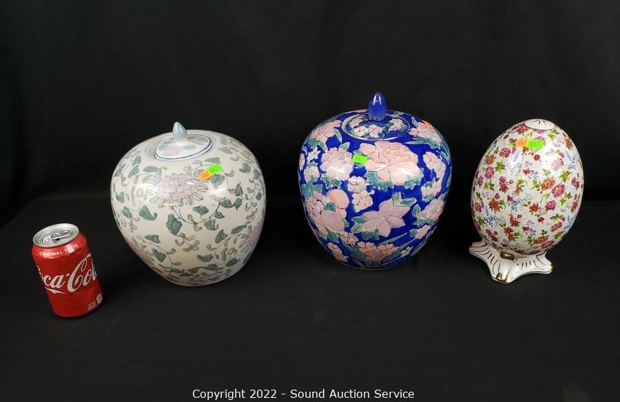 Lot Details: 9" & 10" H x 8" & 9" dia Urns, 9-3/4" x 6" dia. egg.