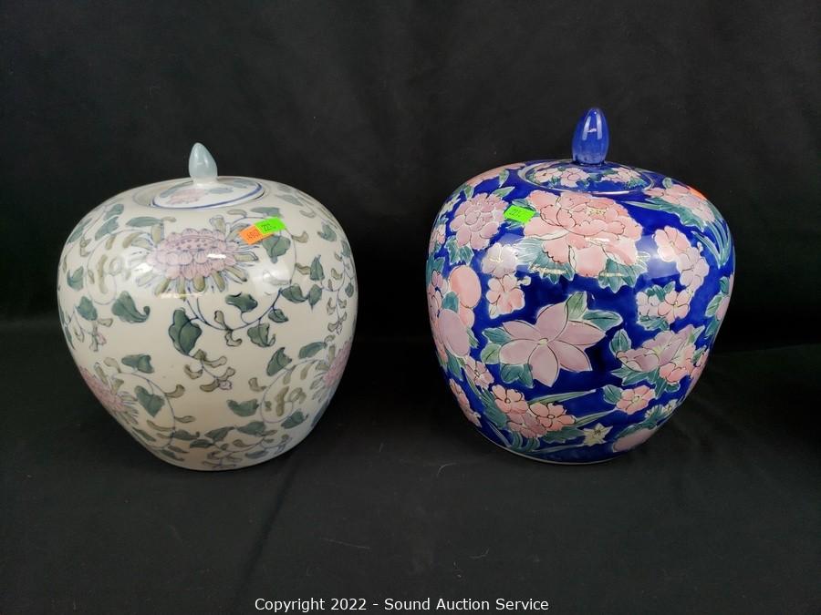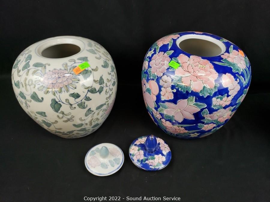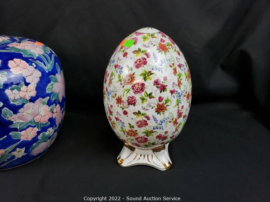 Lot #0221: 2 Porcelain Urns & Egg Decor