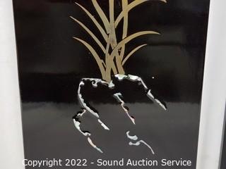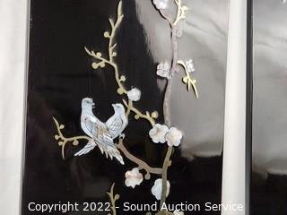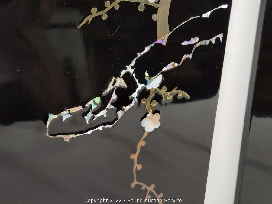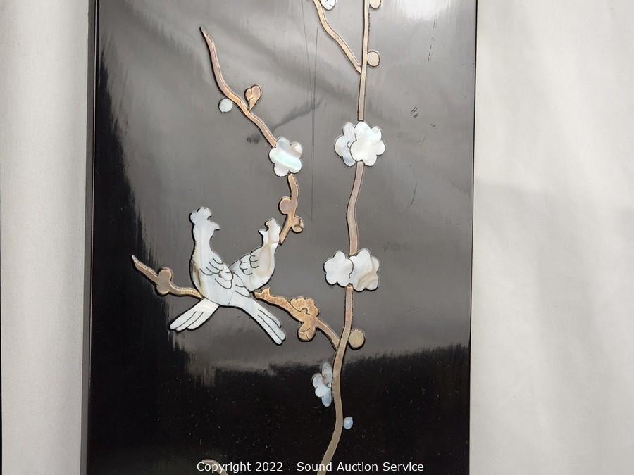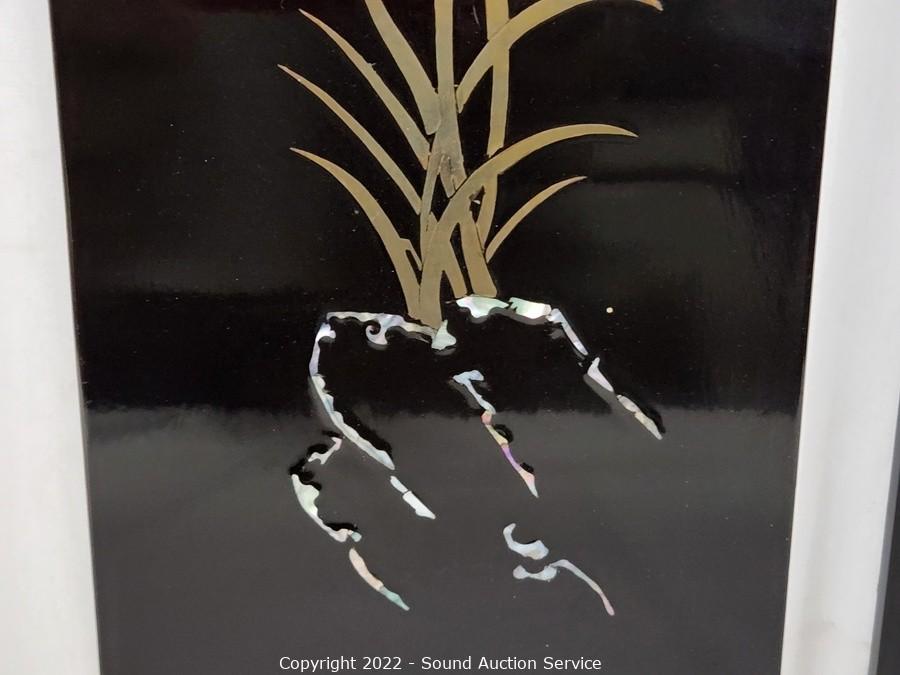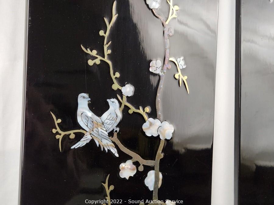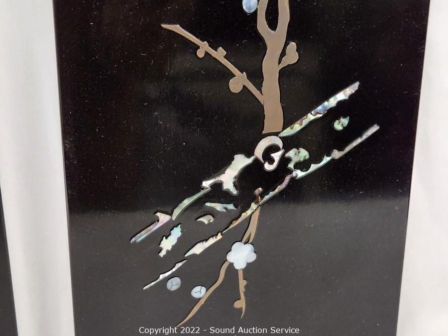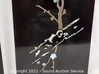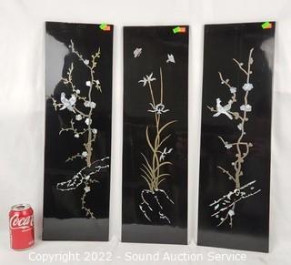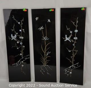 Lot #0177: 3pc Black Enameled MOP Asian Decor Panels
