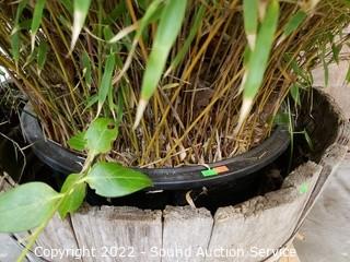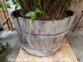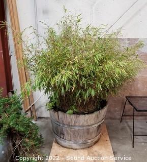 Lot #0404: Live Potted Bamboo Plant w/Half Barrel Pot