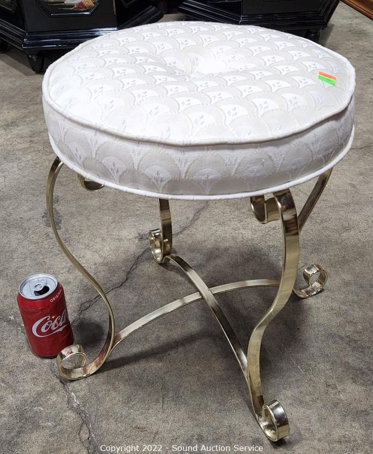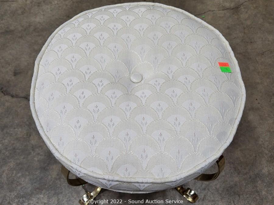 Lot #0086: Nice Brass Ivory Upholstered Stool