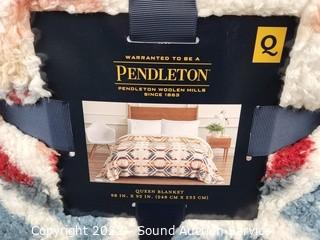 Lot #0073: Pendleton Queen White's Multi Sherpa Blanket