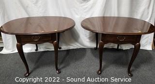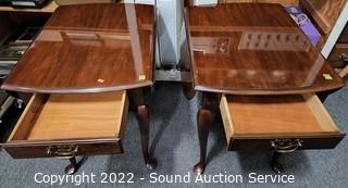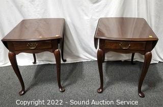 Lot #0024: 2 Drexel Single Drawer Drop-Leaf End Tables