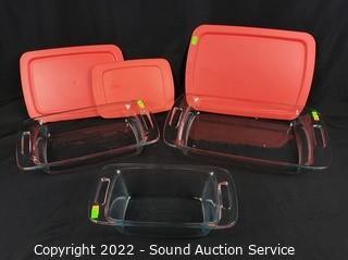 Lot #0340: 2 Pyrex Baking Pans & Loaf Pan w/Lids