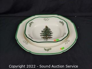 Lot #0322: 2 Spode Christmas Tree 11" Server & 16" Platter