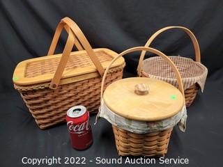 Lot #0193: 3 Longaberger Signed Hand Woven Baskets