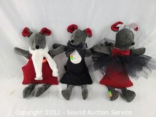 Lot #0148: 3 Woof & Poof Stuffed Holiday Mouse Dolls