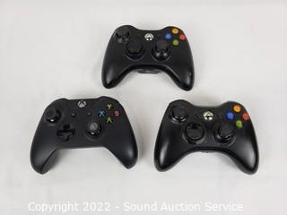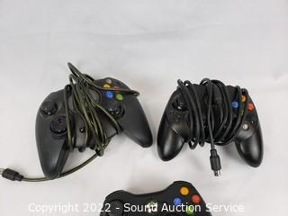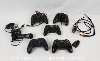 Lot #0203: 5 XBox Controllers, Transfer Cables, Microphone
