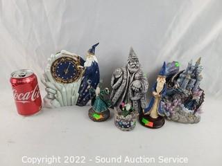 Lot #0269: 6pc Composite Wizard Figures & Clock