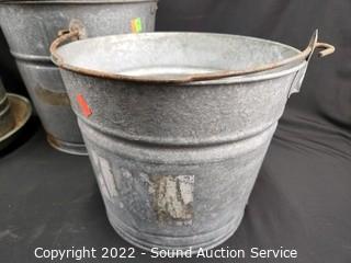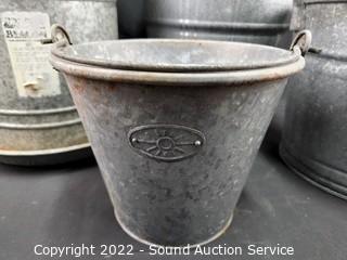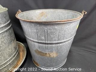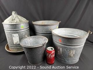 Lot #0181: Galvanized Poultry Feeder & 3 Pails