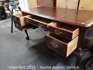 Lot #0064: Hekman Cherry Finish Leather Top Executive's Desk