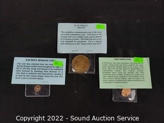 Lot #0226: Mint Error Coin, Elvis Medallion & Roman Coin