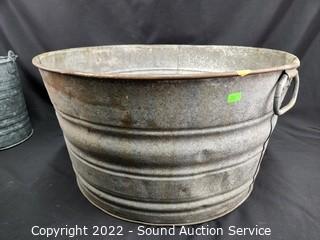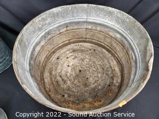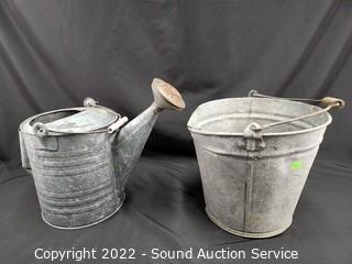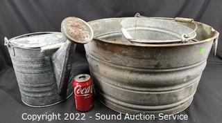 Lot #0178: Rustic Galvanized Tub, Pail & Watering Can