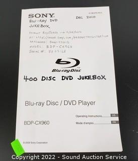 Lot #0328: Sony BDP-CX960 Blu-Ray/DVD 400 Disc Player