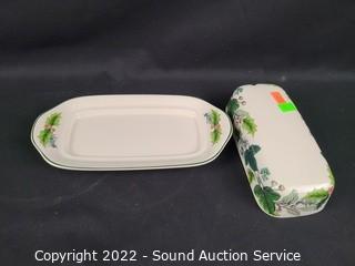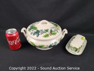 Lot #0142: Spode "Green Garland" Covered Server & Butter Dish