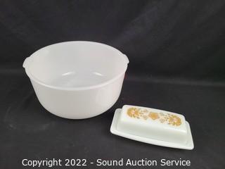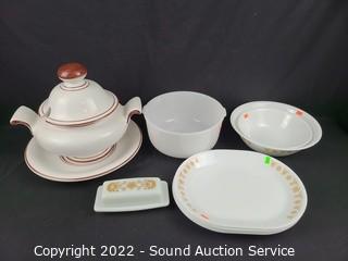 Lot #0292: Vtg. Portugal Tureen, Corelle Dishes, Pyrex Bowls
