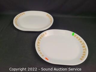 Lot Details: 5 Corelle 11" platters, 8" & 10" bowls, Pyrex butter dish & 10" bowl. 10" tureen with drip plate.