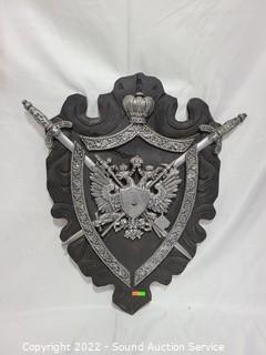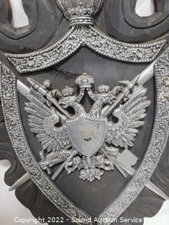 Lot #0285: Wood & Cast Metal Coat of Arms Wall Decor