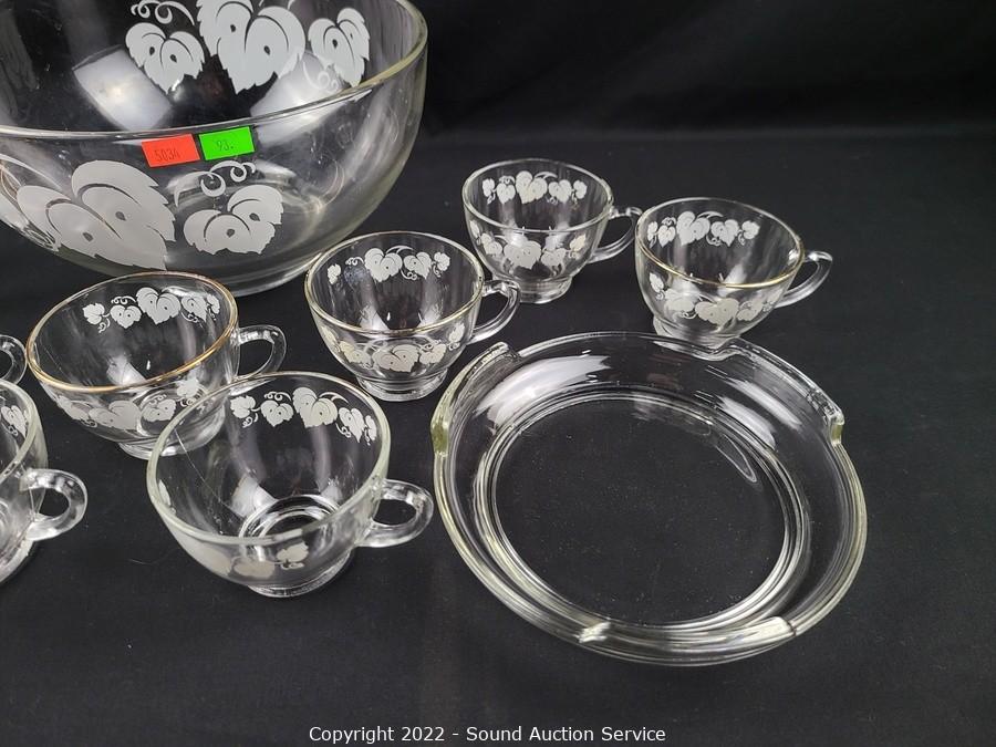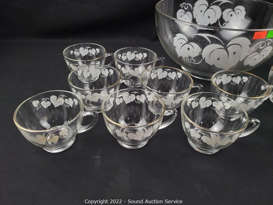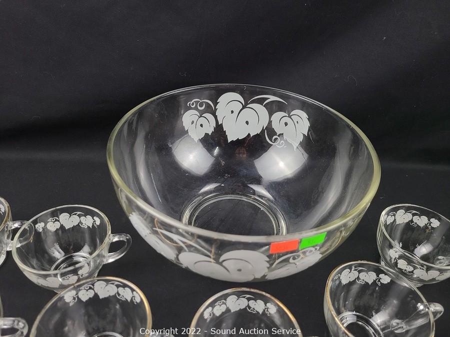 Lot #0366: 13pc Leaf Print Punch Bowl Set