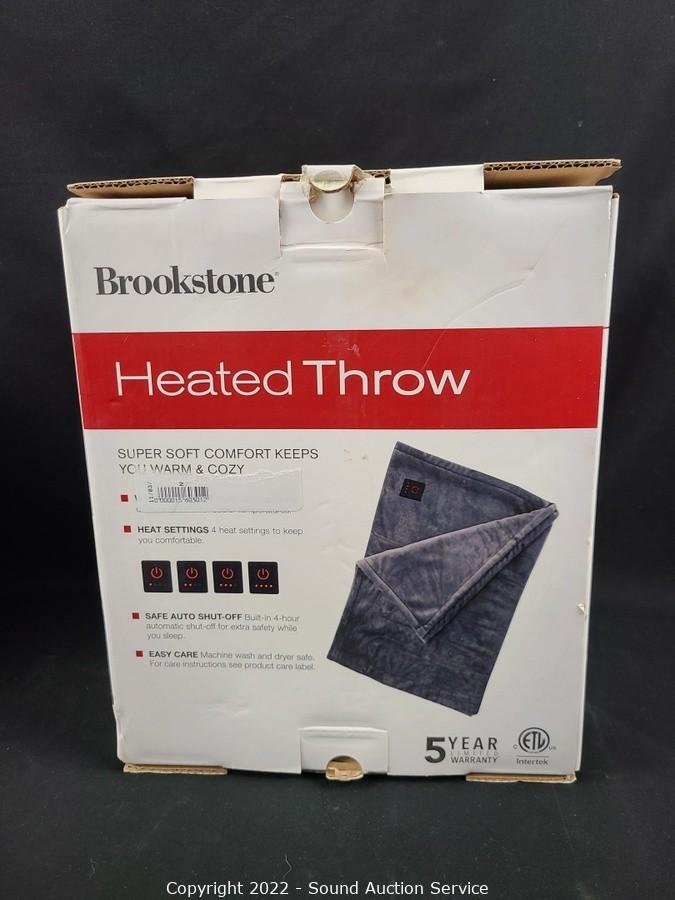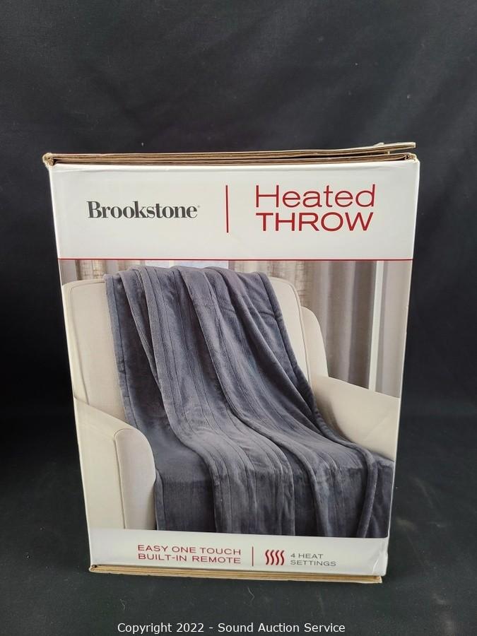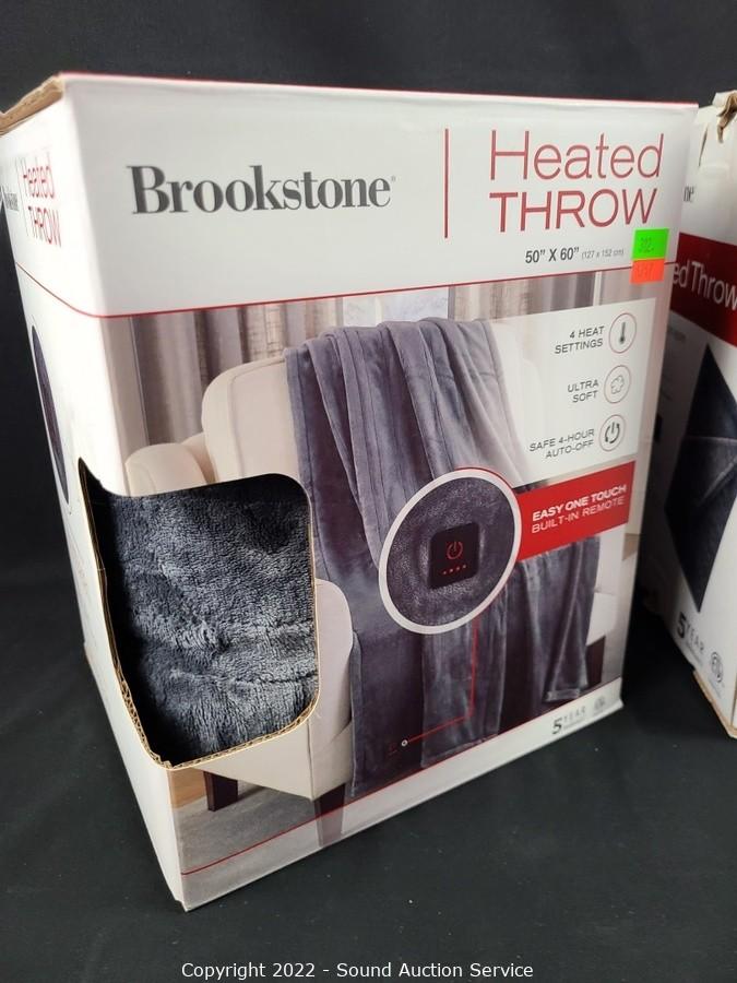 Lot #0302: 2 Brookstone Dk. Gray Heated Plush Throw Blankets