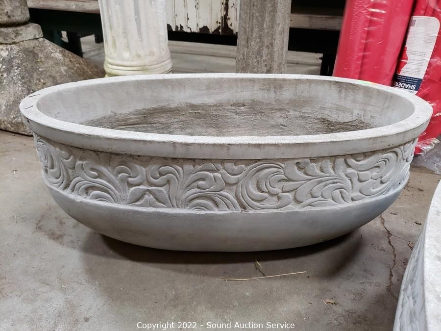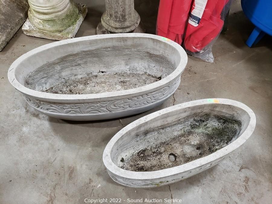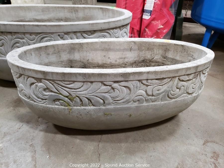 Lot #0300: 2 Concrete Elongated Oval Planter Pots