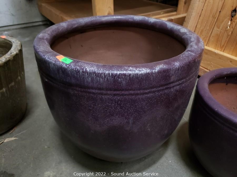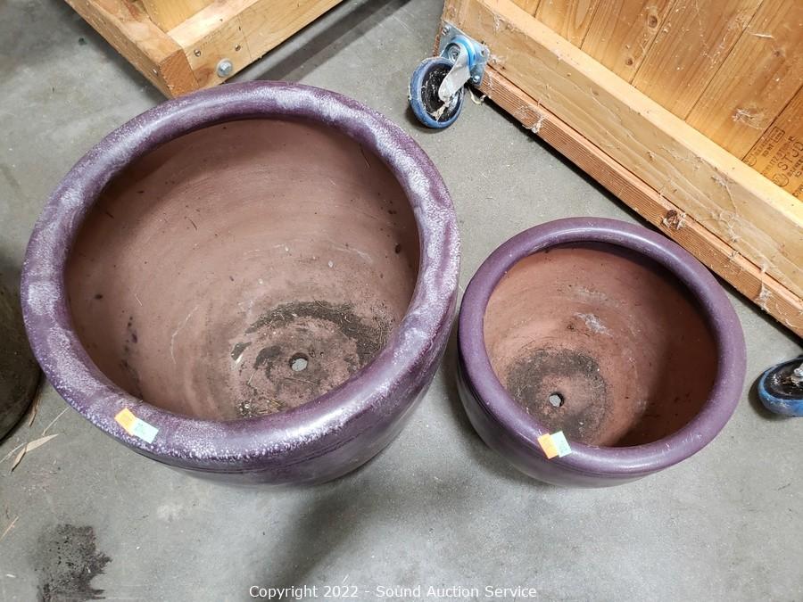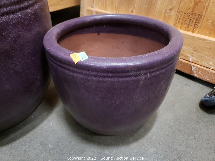 Lot #0274: 2 Purple Glazed Pottery Planter Pots