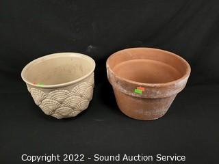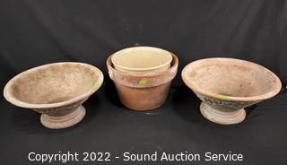 Lot #0180: 3 Terracotta & 1 Ceramic Planter Pots