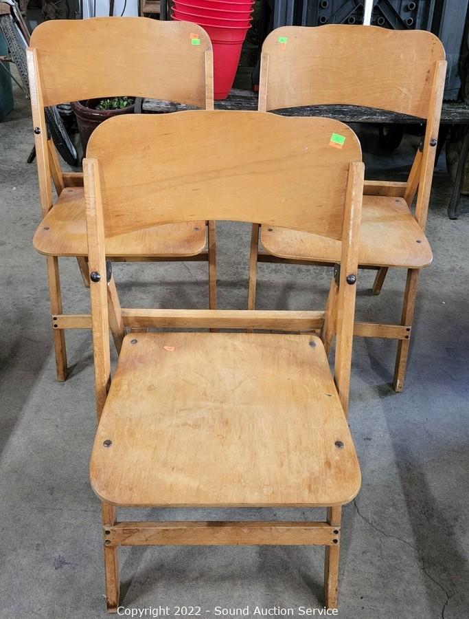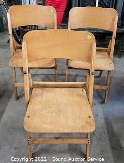 Lot #0035: 3 Vintage Wood Folding Chairs
