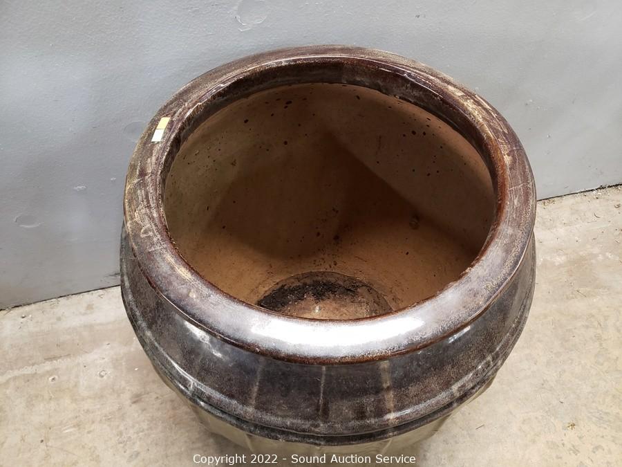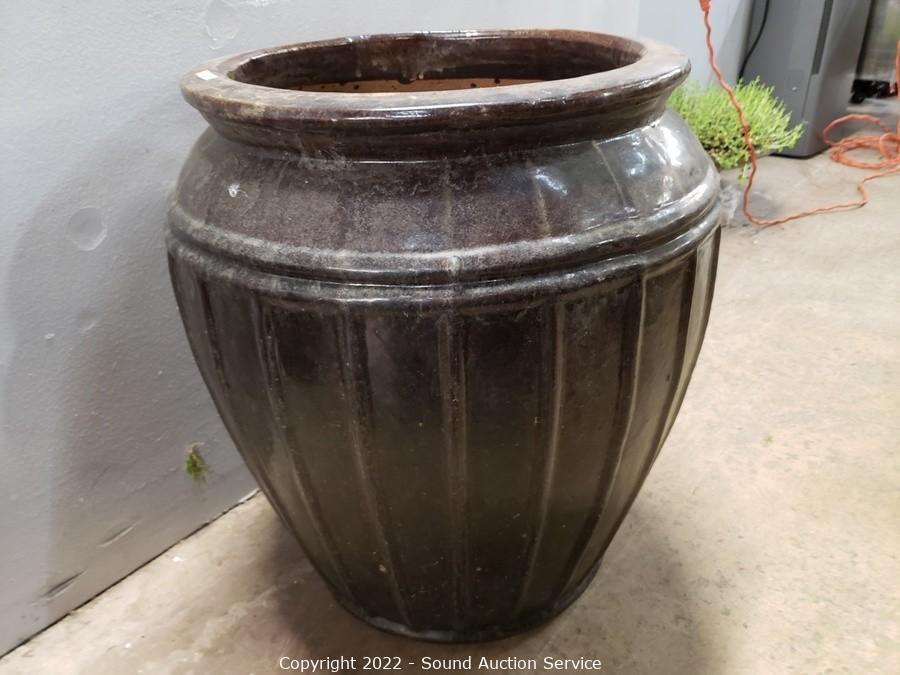 Lot #0059: Large Black Glazed Pottery Planter Pot