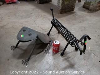 Lot Details: 11" H x 23" L poodle, 8" H x 15" x 10" frog. Various weathering, rust.