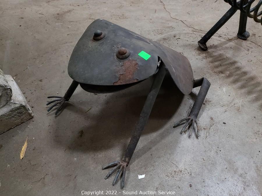 Lot Details: 11" H x 23" L poodle, 8" H x 15" x 11" frog. Various weathering, rust.