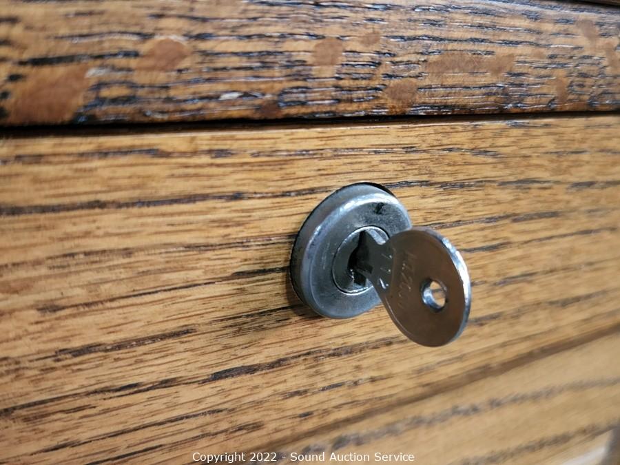 Lot Details: Appears to be solid wood construction. Locking, comes with key. Some wear to the finish. 31" x 18.5" x 25.5".