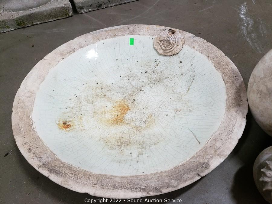 Lot Details: 19" Dia. birdbath, some crazing. 4", 6" & 8" Dia. spheres.