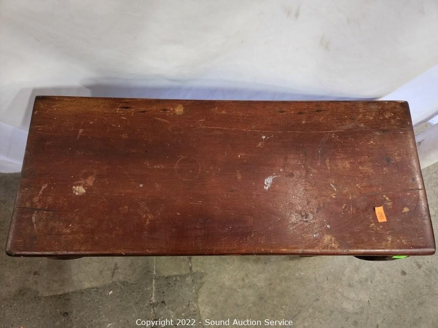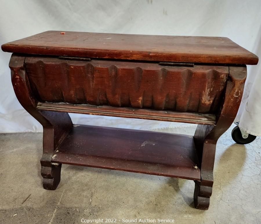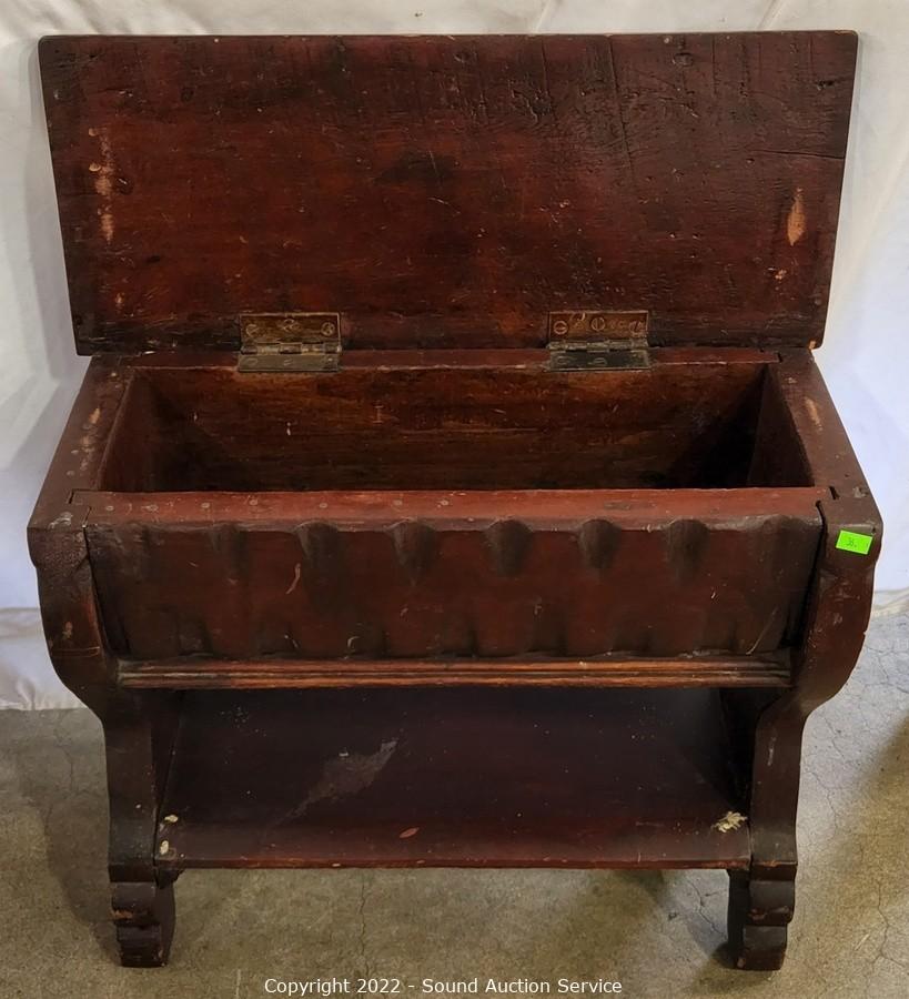 Lot Details: Some wear to the finish. 18.5" x 22" x 9". Solid wood construction.