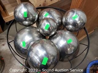 Lot Details: Gazing balls are metal 3", 4.5" & 6" Dia. 32" H x 13" Dia stand.