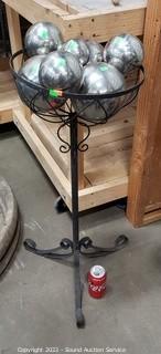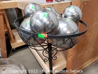 Lot #0285: Wrought Iron Planter Basket Stand w/7 Gazing Balls