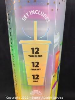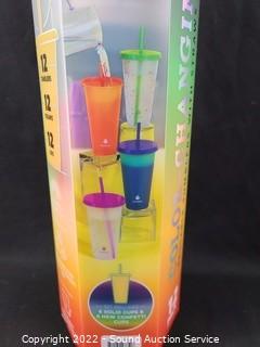 Lot #0402: 12pk Manna Color-Changing 24oz Tumblers w/Straws