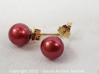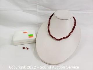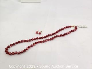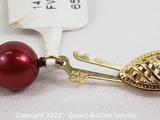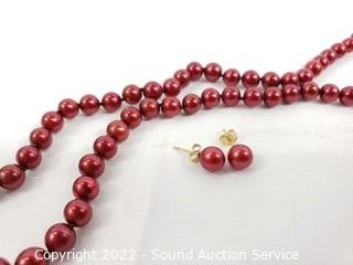 Lot #0230: 14K Gold & Genuine Pearl Necklace & Earring Set