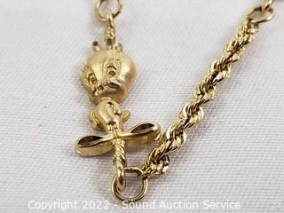 Lot #0222: 14k Gold Tweety Bird 7" Bracelet TW:4g