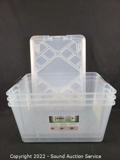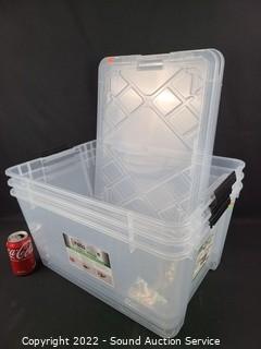 Lot #0418: 3 Greenmade 45qt Clear plastic Totes w/Lids