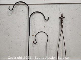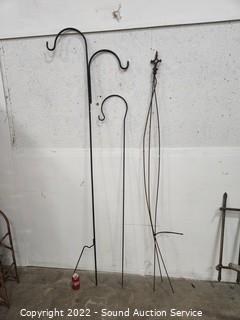 Lot #0437: 2 Wrought Iron Shepard Hooks & 6ft Plant Cage