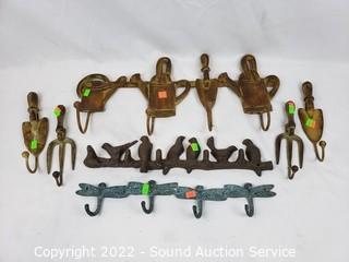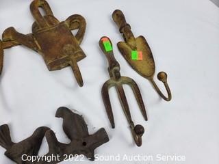 Lot #0142: 7 Cast Iron Coat / Hat Hooks, Racks