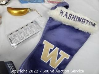 Lot #0132: Assorted Ornaments & Stockings - Mostly Huskies