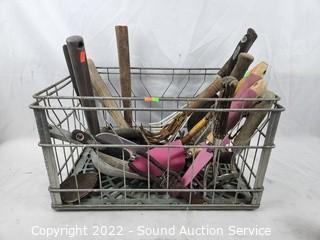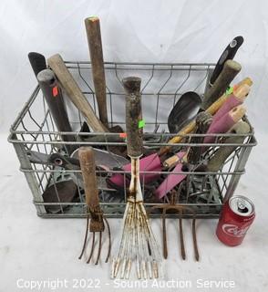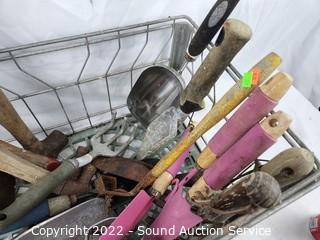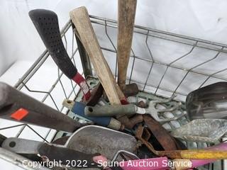 Lot #0417: Assorted Rustic Lawn & Garden Tools, Basket