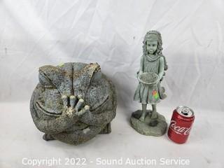 Lot #0414: Composite Frog & Girl Yard Art Statuaries