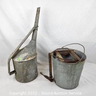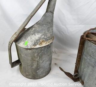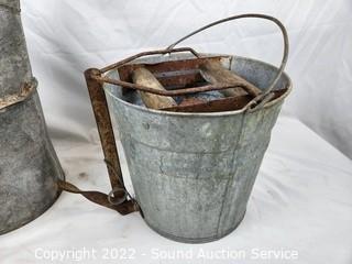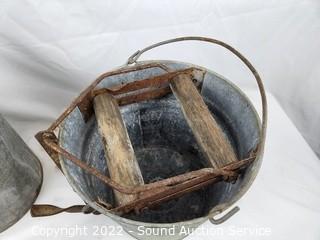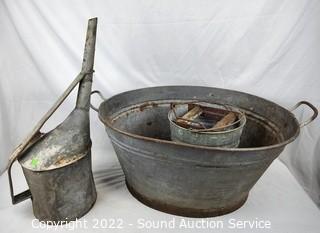 Lot #0128: Rustic Galvanized Tub, Mop Bucket & Fuel Can